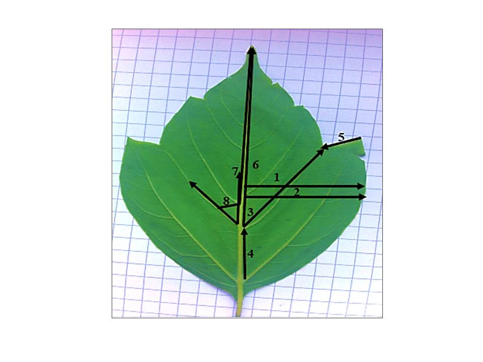 2. Рис. 2. Промеры верхней листовой пластинки Acer negundo L. для оценки флуктуирующей асимметрии | |
